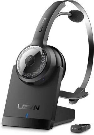 Wireless Headset with Mic for Work, Wireless Headset (Charging Base, Noise Cancelling & Mute Button), Long Battery Life, Bluetooth Headsets for Home/Office/Call Center/Laptop/Teams/Zoom, Black