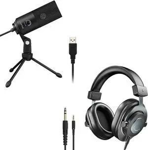 FIFINE Recording USB Microphone 3.5mm/6.35mm Headphones, Studio Bundle on MAC OS,Windows, for Podcasting, YouTube, Videos, Metal Condenser Mic adn Over-Ear Wired Monitoring Headphones (K669B+H8)
