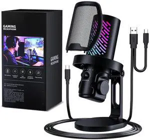 USB Microphone, Computer Condenser Mic with Noise Cancellation, Echo Mode, RGB Lighting, Mute Button, Plug & Play Gaming Mic for PC, Mac, PS5, Streaming, Recording, Podcasting & Online MeetingsBrand: LRUFOBColor: BlackConnector: USB Type-CMicrophone Sensitivity: -45 decibelsModel #: 821051352182