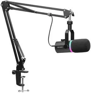 FIFINE Gaming XLR Microphone and Low Profile Boom Arm Bundle, USB Recording PC Mic with Headphones Jack, Mute Button for Streaming, Podcast, Dynamic RGB Mic with Metal Arm Stand Kit (AM8P+BM88P)