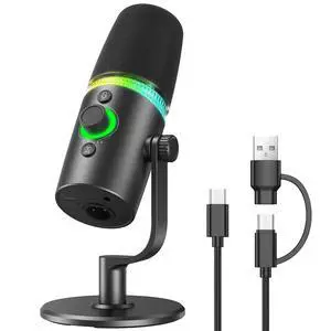 USB/XLR Dynamic Microphone Podcast & Gaming Microphone for PC, Vocal Mic with RGB Lighting, Tap-to-Mute, Gain Control & Headphone Monitoring for YouTube Streaming
