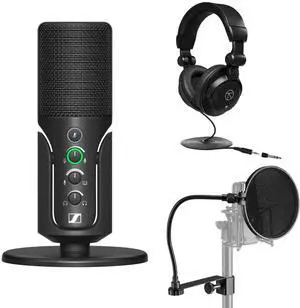 Sennheiser Profile Cardioid Condenser USB-C Microphone, Bundle with TAPH100 Headphones and Pop Filter