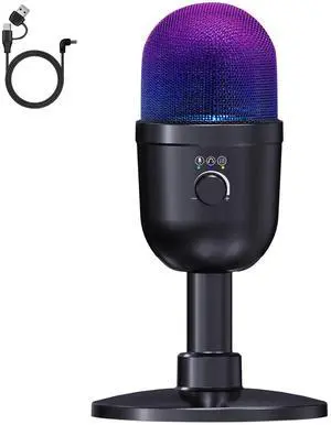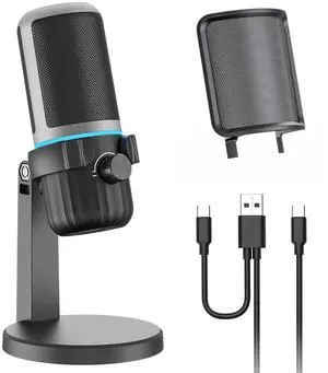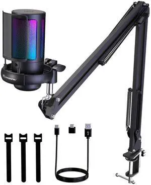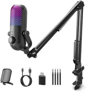 USB Microphone for PC, RGB Gaming Microphone with Mute Button, Gain Control, Monitoring Headphone 3.5mm Jack, PC Mic for Gaming, Streaming, Podcast, VoiceOver, Recording- Brand: VCOM