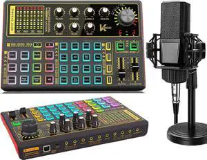 K300 Podcast Equipment Bundle, With Podcast Condenser Microphone, Voice Changer Sound Card with Multiple Sound Effects and LED Light, Prefect for Streaming/Podcasting/Gaming/Recording/YouTube/PC
