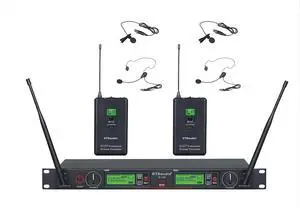 Pyle Dual Channel Wireless Microphone System - Vhf Fixed Dual Frequency Wireless Mic Receiver Set With 2 Lavalier, 2 Headset Mics, 2 Transmitter, Receiver - For Pa, Karaoke, Dj Party - Pyle Pdwm2145