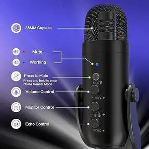 Base with recording studio style controls, and Microphone Angle Adjuster