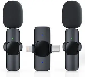 2 Pack Type C Mini Wireless Lavalier Microphone for iPhone 15 & Android Devices, Crystal Clear Sound Quality with Noise Reduction Lapel Microphone Plug-Play for Podcast Vlog YouTube TikTok