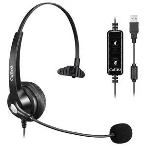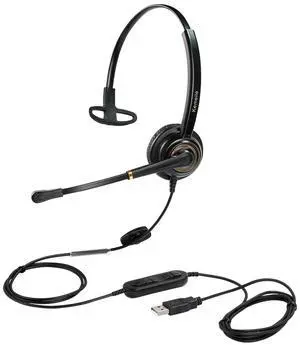 UH34 USB Headset with Mic, Single Ear Wired Headphones with Noise Cancelling Microphones, Professional Work Headphones VoIP Phone Computer Call Center Office,Ultra Light Mono