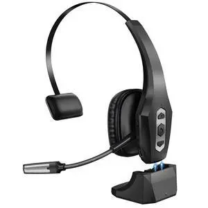 WIILGN Binaural Wireless Trucker Headphones with Boom Noise Cancelling Mic, Call Center Bluetooth 5.0 Telephone Headset, Charging Base Hands-Free Call Mute Headset for Office Phone and Computer