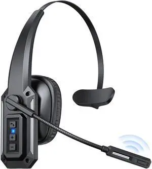 CPTEA Trucker Bluetooth Headset with Mic, Wireless Headset with Noise Cancelling Microphone & Mute Button, 60Hrs Battery, Over-The-Head Bluetooth Headphones for Work, Cellphone, Laptop, Office, Black