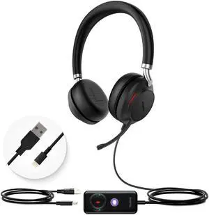 Yealink UH44 Teams Certified USB Wired Headset with 2 Noise Cancelling Mics,Stereo Sound for PC,Laptop,Teams,Zoom,Call Center,Home Office,Inline Controls,Comfort Ear Cushions,USB-C/A,Busylight