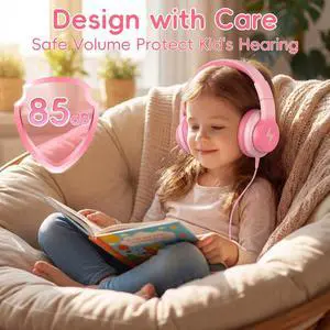 Kids Headphones, USB Type C Headphones for Kids, 85dB Safe Volume, HD Stereo Sound, Comfortable Fit, Adjustable & Foldable, Ideal for School/Travel (Gradient Pink, Without Microphone)