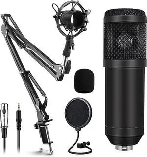 Condenser Microphone Bundle with Live Sound Card, Metal Shock Mount and Doubl,Adjustable Mic Suspension Scissor Arm,Podcast Equipment Bundle - -Layer Pop F