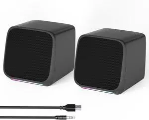 GS510 RGB Desktop Speakers, 2.0 Channel PC Computer Speaker with 4 Colorful LED Backlight Modes, Enhanced Bass and Easy-Access Volume Control, USB Powered w/ 3.5mm Cable