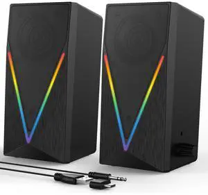 Computer Speakers for Desktop PC Monitor, External Speakers for Laptop, USB-Powered, Plug-n-Play, Wired, Clip-On, Small Computer Soundbar for PC, with Loud Sound, Rich Bass, G-Sensor, USB-C Adapter- Satellite RMS Power /ea: 8 watts