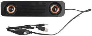 Wired Desktop Speaker, ABS 60Hz-20kHz 360 Degree HiFi Stereo Subwoofer USB Powered 3.5mm Plug Portable Desktop Long Speaker