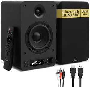 Active Bookshelf Speakers 40W RMS, Powered Stereo Speakers with 4" woofer and 1.25" Tweeter, Bluetooth,USB, HDMI/Optical/AUX/RCA Inputs for PC and TV, LED Display, Bass & Treble Control
