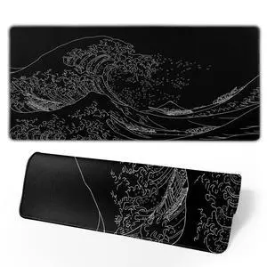 Japanese Sea Wave Large Mouse Pad, Anime Black Gaming, Extended Kanagawa Mat Desk Pad, 3mm Thick Long Non-Slip Rubber Base Mice Pad, 31.5 X 11.8 Inch