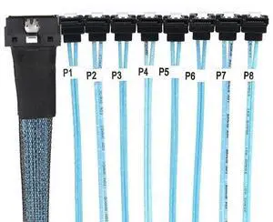 SlimSAS LP Low Profile SFF-8654 8i 74P to 8* SATA 7P 90 Degree Cable \u2013 30AWG Server Internal High Speed Connection Harness (0.5M)