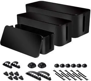 Cable Organizer Box Set of Three, Power Cover Cord Holder Surge Protector for Desk (Black)
