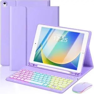 Case with Keyboard Mouse for iPad 9th 8th 7th Generation 10.2 inch,7 Color Rainbow Backlight Detachable USB-C Keyboard Magnetic Case with Pen Slot for iPad Air 3rd Gen/Pro 10.5 Purple