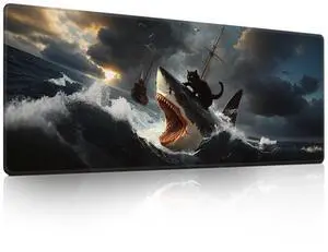 Sea Shark Mouse Pad Large Gaming Mouse Pad- 35.4x15.7x0.12x0.12 inch Computer Keyboard Mouse Mat Non-Slip Mousepad Rubber Base for Game Players, Office, Study