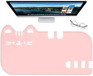 Large Gaming Mouse Pad, Extended Mouse Mat with Stitched Edges, Cute Anime Cat Keyboard Pad with Non-Slip Base, Big XXL Desk Mats for Gamer, Computer, Office Accessories, 29.5 x 15.9in, Pink