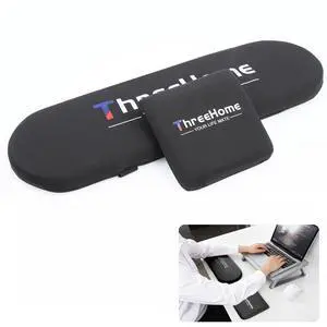 Keyboard and Mouse Wrist Rest Set - Memory Foam + Ice Silk Desk Essentials, Removable Washable Wrist Support with Elbow Rest for Desk, Ideal for Laptops with Stands, Eases Wrist Fatigue, Black