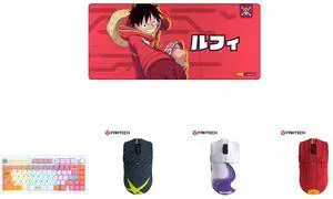 FANTECH One Piece Edition Luffy Gaming mousepad, MP905 Deskmat, Wear-resistant, waterproof, and slip-resistant rubber mat with a stylish design, 36*16*0.2 inch mouse pad, Red and Fantech One Piece Nami Edition Wireless Gaming Mouse, PixArt PAW3311 Sensor, 57g Lightweight, Tri-Mode Connectivity, RGB Charging Dock, 12000 DPI for PC & Mac, WG13E PINK and Fantech One Piece Zoro Edition Wireless Gaming Mouse, PixArt PAW3311 Sensor, 57g Lightweight, Tri-Mode Connectivity, RGB Charging Dock, 12000 DPI for PC & Mac, WG13E Deep Blue and Fantech One Piece Gear 5 Luffy Edition Wireless Gaming Mouse, PixArt PAW3311 Sensor, 57g Lightweight, Tri-Mode Connectivity, RGB Charging Dock, 12000 DPI for PC & Mac, WG13E Purple and Fantech One Piece Luffy Edition Wireless Gaming Mouse, PixArt PAW3311 Sensor, 57g Lightweight, Tri-Mode Connectivity, RGB Charging Dock, 12000 DPI for PC & Mac, WG13E Red