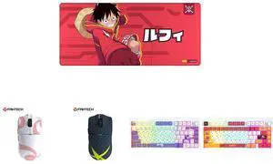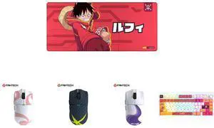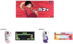 Fantech One Piece Luffy Edition Wireless Gaming Mouse, PixArt PAW3311 Sensor, 57g Lightweight, Tri-Mode Connectivity, RGB Charging Dock, 12000 DPI for PC & Mac, WG13E Red and Fantech One Piece Nami Edition Wireless Gaming Mouse, PixArt PAW3311 Sensor, 57g Lightweight, Tri-Mode Connectivity, RGB Charging Dock, 12000 DPI for PC & Mac, WG13E PINK and Fantech One Piece Zoro Edition Wireless Gaming Mouse, PixArt PAW3311 Sensor, 57g Lightweight, Tri-Mode Connectivity, RGB Charging Dock, 12000 DPI for PC & Mac, WG13E Deep Blue and Fantech One Piece Gear 5 Luffy Edition Wireless Gaming Mouse, PixArt PAW3311 Sensor, 57g Lightweight, Tri-Mode Connectivity, RGB Charging Dock, 12000 DPI for PC & Mac, WG13E Purple and FANTECH MK921 Gaming Mechanical Keyboard,One Piece Edition, Wireless/Wired/BT Connection ,RBG Controls, 80 Keys, USB-C Interface, White Shaft, White red,Luffy