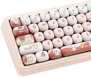 Pink Cute PBT Keycaps, MOA Profile Key caps 60 65 75 100 Percent, Dye-Sublimation, Custom 133 Keys Set for 100%, 75%, 65%, 60% Mechanical Keyboard