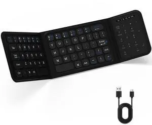 Nsyee Foldable Bluetooth Keyboard, Folding Wireless Keyboard with Trackpad and Numeric Keypad, Portable Travel Keyboards for iPad Tablet Smartphone Laptop PC Windows iOS Android, Black