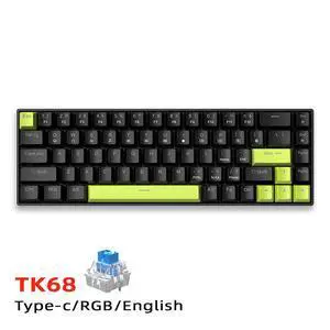 TK68 Mechanical Keyboard - RGB Key Cable Separated Customized Blue and Red Axes Computer Peripheral Gaming Wired Keyboard 68-key black-RGB-blue keycaps