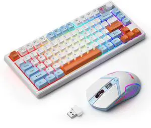 75% Wireless Gaming Keyboard and Mouse with Smart Display, Rechargeable Light Up Wireless Keyboard with Knob Control, RGB Backlit Gaming Mouse for Mac Laptop Computer PC Gamer