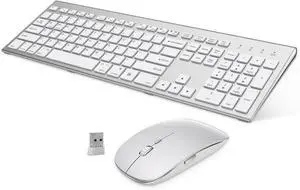 Wireless Keyboard and Mouse Combo, Rechargeable Quiet Keyboard Mouse, Sleek and Ultra Thin Design, Full-Size with Number Pad for Windows, Laptop, PC, Notebook, Desktop- Silver and White