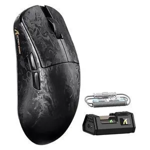 R11 Ultra 8K Carbon Fiber Wireless Gaming Mouse with 42000 DPI-PAW3950 MAX Sensor-49g Lightweight,Nordic 52840 MCU Chip,Wired/BT/2.4Ghz Programmable,RGB Coiled Cable for PC Mac(Black Ink)