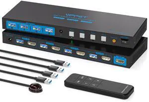 Video Resolution: KVM Switch 4 Computers supports stunning resolutions of up to 8K@60Hz, improving image clarity and color saturation for a stunning visual experience. It is also backward compatible with resolutions such as 4K@144Hz, 1080P@60Hz, and 720P@60Hz. Note: To achieve the highest resolution, ensure that the signal source, HDMI cable, and DP cable all support 8K@60Hz