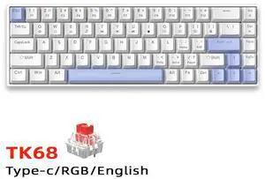 TK68 Mechanical Keyboard - RGB Key Cable Separated Customized Blue and Red Axes Computer Peripheral Gaming Wired Keyboard 68-key white and purple - RGB - red axis
