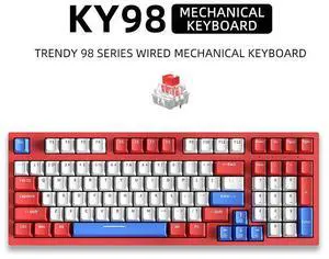 KY98 Wired E-sports Mechanical Keyboard with Mixed Lighting, Customizable Hot-swappable Black Keys and Red Keys, Computer Office Gaming Keyboard 97 key - red - red axis