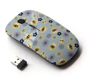 KawaiiMouse [ Optical 2.4G Wireless Mouse ] Bee Flowers Pattern Yellow