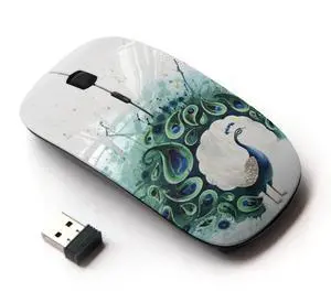 KawaiiMouse [ Optical 2.4G Wireless Mouse ] Teal Peacock Feather Painting Bird