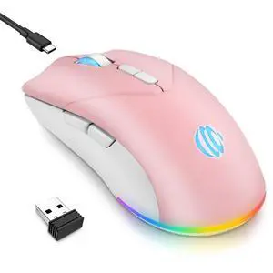 mobiproduct Wireless Bluetooth Mouse, Rechargeable USB Optical Mouse, 3 Adjustable DPI, LED Silent Dual Mode(Bluetooth 5.2 and 2.4G) Wireless Mouse for Laptop, PC, MacipadWide Compatibility.(Pink)