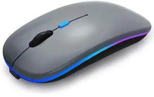 WREANU Wireless Bluetooth Mouse Rechargeable Laptop Mice with LED Lights Silent Slim Use(BT5.2 and 2.4G Portable USB) Dual Mode Computer Mouse for Laptop/iPad/Tablet/Apple/Computer/Mac (Grey)