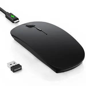 RAPIQUE Bluetooth Wireless Mouse, Dual Bluetooth & 2.4G, Type-C Rechargeable, Silent Click, Slim Symmetrical Design, Portable for Laptop/iPad/MacBook/Desktop/Windows/macOS  Black
