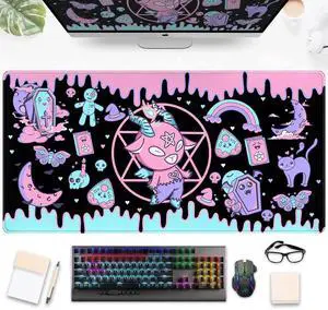 JVFYI Cute Pastel Goth Desk Mat Kawaii Japanese XXL Extra Large Extended Desk Pad Gaming Mouse Pad,Anime Computer Laptop Mat Keyboard and Mouse Mat for Women Office Desk Decor Gamer Gift 31.5"x15.75"
