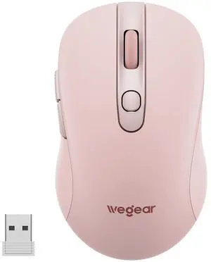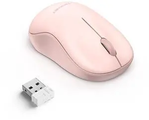 USB Wireless Mouse for Laptop PC Mac, 2.4GHz Cordless Mouse with 6 Buttons, 5-Level Adjustable 4000 DPI, Ergonomic Portable Optical Computer Mice, 24-Month Battery Life-Pink