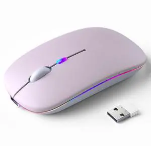Wireless Bluetooth Mouse  Rechargeable, Silent, Dual Mode (Bluetooth 5.2 & USB) with LED Lights  Portable for Laptop, Desktop, & Tablet(Pink)