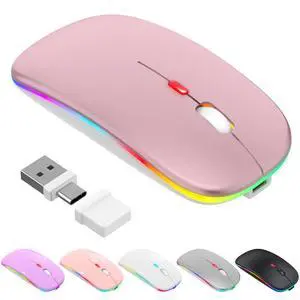 LED Bluetooth Wireless Mouse for MacBook Air Mac Pro Laptop iPad Rechargeable Silent Light-Up Optical Mouse with Jiggler Dual Mode BT5.2 & USB-A/USB-C for Students, Kids, Girls, Boys  Rose Gold