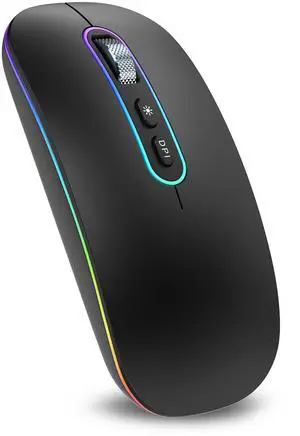 AIKOKOK Wireless Bluetooth Mouse Rechargeable Laptop Mice with LED Use Portable(BT5.2 and USB 2.4G) Dual Mode Connection Silent Slim Computer Mouse for Laptop/iPad Tablet/Apple MacBook/PC (Black)