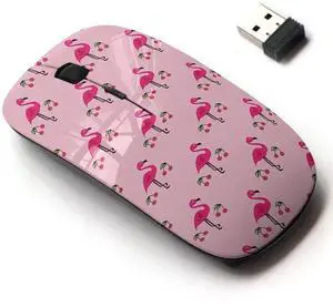 CJCBROES 2.4G Wireless Mouse with Cute Pattern Design for All Laptops and Desktops with Nano Receiver - Pink Flamingos can